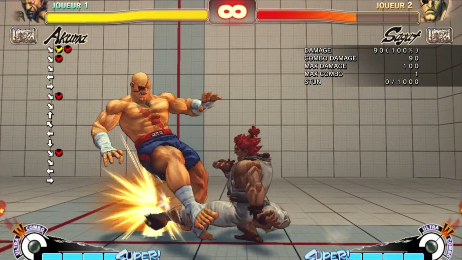 ATrigger : Detects the combination you hold on the controller, (direction + button) and displays it. Straight UP or DOWN isn't allowed !